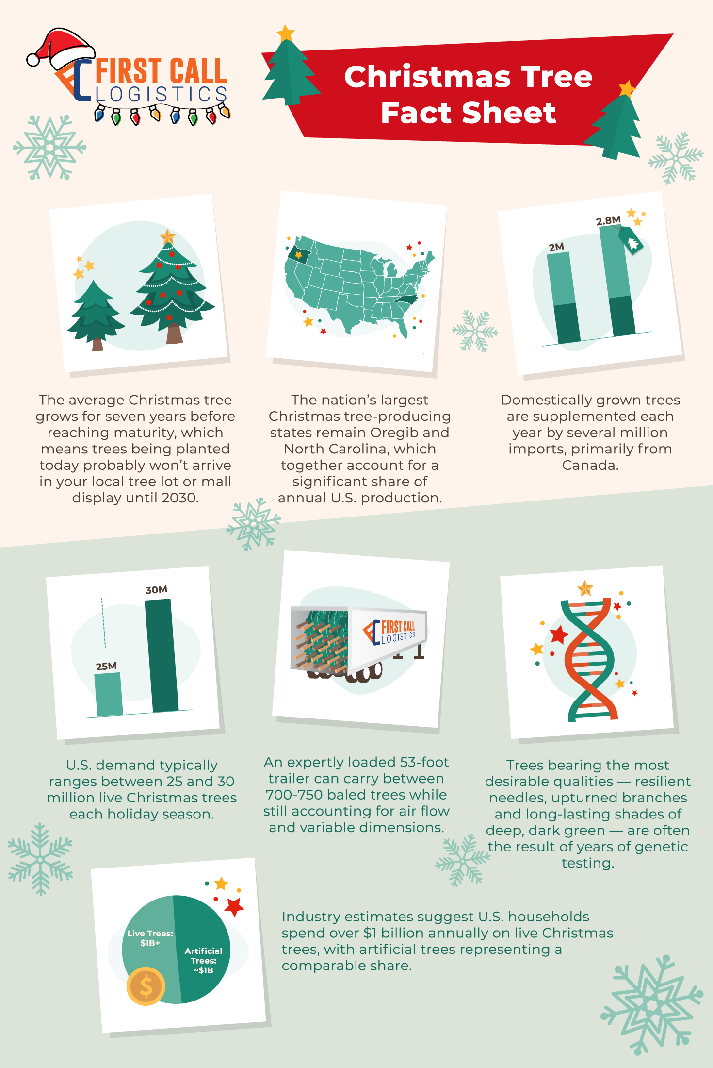 At First Call Logistics, we’re celebrating the Holiday Season in true logistical fashion by breaking down the where, when and how of the Christmas tree supply chain.